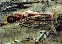 Bob set up the cam corder and we began to improvise. I found an unusually shaped piece of bark and pushed it into a deer track in the soft wet sand. I took a few photos of this and we continued to move and make sounds. I raked finger marks in the wet sand with 3 fingers of each of my hands etching a vaginal shape. I heaped and patted what was dug up into a small mound at the bottom of the shape. Then I gathered pieces of the dead bark and formed a kind of fence around the vagina.