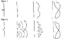 Figure one illustrates the pattern on a grid of two curves representing the probability of arrival of the particles coming from each hole. Figure two shows how waves behave differently. The wave energy recorded along the detector is similar, in the overall pattern, to the probability of arrival in figure one, however, with an important difference. The waves coming from the two holes interfere with each other causing patterns within the patterns.