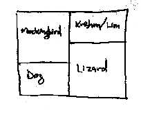 The Mockingbird was a big influence on me during my early childhood. I learned his song when I was only three years old and I have always admired the territorial behavior of the male singer. I got a dog, Happy, when I was about five years old. I was baptized as a Christian when I was six and I think that the concept of Christ as my guide became merged with my feelings for my dog who would lead me through the woods behind my house. The Dog is my kind and generous companion who is nurturing and forms the basis of my morals and ethics. When I was eighteen, I helped found the new music improvisation ensemble, BL Lacerta (lacerta is Latin for lizard), and I first experienced sex and drugs. The Lizard is my Muse who is closely connected with nature, chaos, spontaneous creation, and change/Death. The Lizard is a chameleon who is a master of change. About five years later, I became attracted to Krishna as the ideal image for God. He is capable of having many different forms, the most influential for me being a boy dancing and playing the flute, which is a way that I see myself in the day-world. I also enjoy his other form as Nrshimhadeva, the Man-Lion who killed demons with savage ferocity. I have had dreams of Krishna flirting with me as a boy and appearing to vanquish demons. My attraction for Krishna may be particularly narcissistic. The distinctions between the allies are not as clear as these categories may imply. The qualities of one ally may blend into another. I have written a novella, The Quiet People, in which the four allies act as the main characters. They each have their own very active imaginal worlds. Within those imaginal worlds are certain aspects of the other allies interacting on different levels of consciousness. The story's characters sometimes conflict when they try to interact with each other. In the same way, these parts of my personality often conflict with each other.